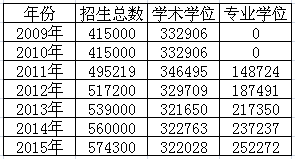 2009-2015年硕士研究生招生计划:专硕与学硕人数趋近