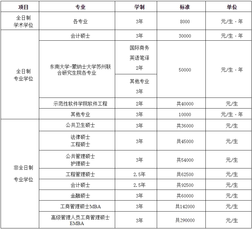 2.根据国家财政部、教育部的相关文件精神,所有纳入招生计划的硕士研究生都要缴纳学费,经江苏省物价部门核准,我校2019年硕士研究生学费标准如下: