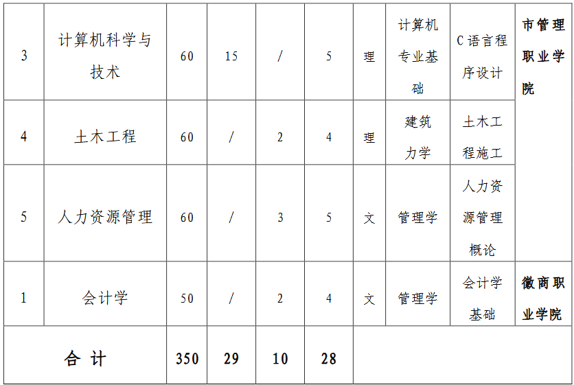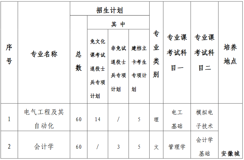 注:1.所有专业学制均为 2 年,须全程脱产学习,非全日制成人专升本请咨询我校继续教育学院:0551-63513043。