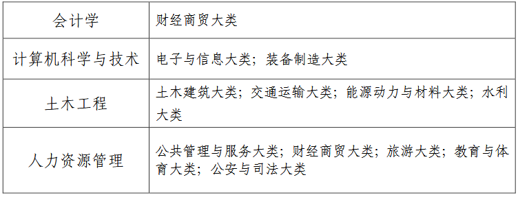 2.所有考生(含技能大赛、退役士兵等各类鼓励政策考生)毕业专业均须符合本表要求;