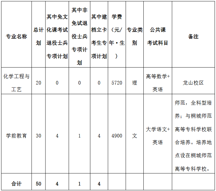 联合培养院校:桐城师范高等专科学校(公办普通高等专科学校)