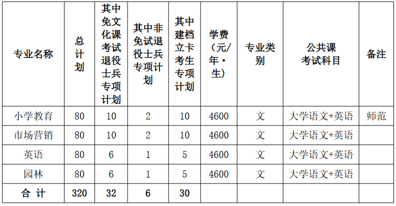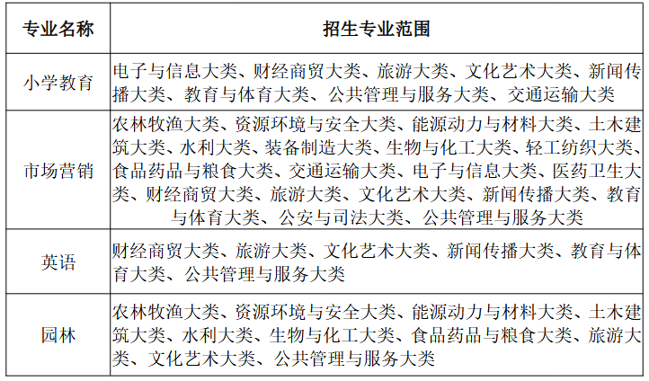 备注:(1)所有专业学制均为 2 年。