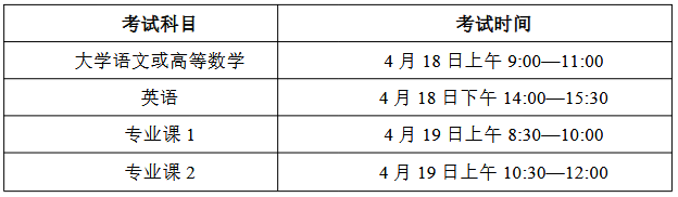 考试科目分省考试院组织的公共课和招生院校组织的专业课两部分。实行“2门公共课(各 150 分)+2 门专业课(各 150 分)”的考试方式,公共课由省考试院组织进行统考,专业课由招生院校组织考试。